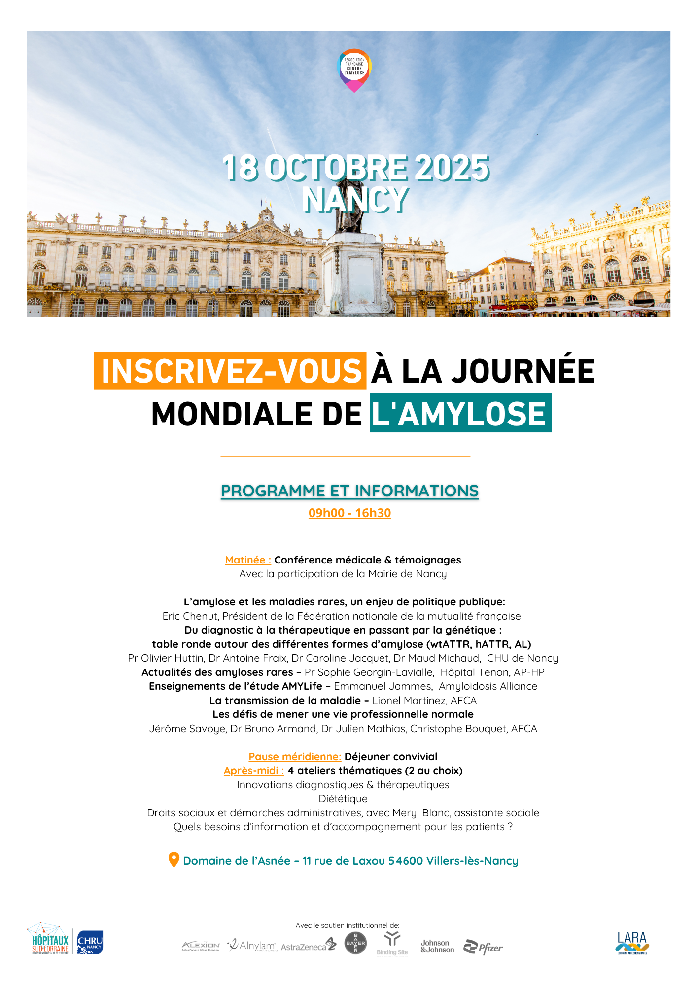 Programme de la journée mondiale contre l’Amylose 2025 à Nancy